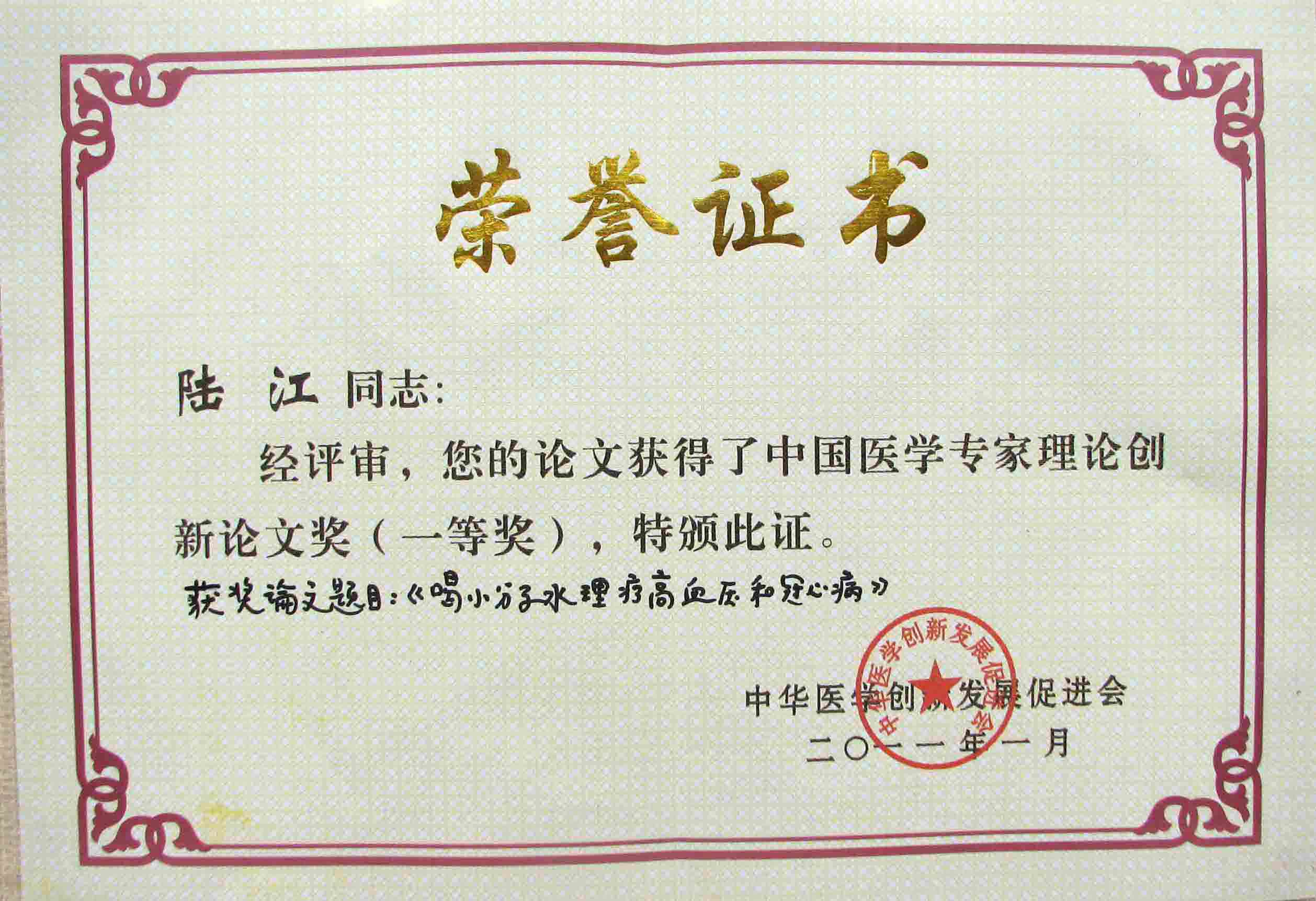 人類幾千年來患以上病癥需終生服藥,幾十年也不能治愈。可是我國南寧的高級工程師陸 江,于1990年想根治高血壓,研究發(fā)明了離子水瓶,處理出微小分子團(tuán)水供飲用,經(jīng)過醫(yī)院臨床試用和專家鑒定,1999年獲中國發(fā)明專利權(quán),產(chǎn)品于2000年投放市場后一直跟蹤調(diào)查,據(jù)全國各地用戶反饋:祛除了高低血壓、糖尿病和冠心病,并使前列腺增生、咽喉炎、鼻竇炎、慢性氣管炎、支氣管炎、矽肺病、哮喘、慢性胃炎、腸炎、慢性膽囊炎、慢性腎炎、腎衰、膀胱炎、便秘、痔瘡、風(fēng)濕性關(guān)節(jié)炎和濕疹皮炎及中風(fēng)后遺癥等病癥不藥而愈。為什么喝微小水能治20多種病?陸 江從1991年德國科學(xué)家發(fā)現(xiàn)細(xì)胞膜水通道僅為2納米獲得啟發(fā),認(rèn)為多種器官患病是因細(xì)胞脫水,不能正常代謝和分裂增殖,才使器官細(xì)胞減少致衰弱萎縮而形成細(xì)胞缺水性病癥。22年來的實踐有力地支持了“細(xì)胞脫水致病”這一重要論點(diǎn),表明喝微小水可滿足細(xì)胞的生理需求,補(bǔ)水就能祛病,是生命科學(xué)新亮點(diǎn)。