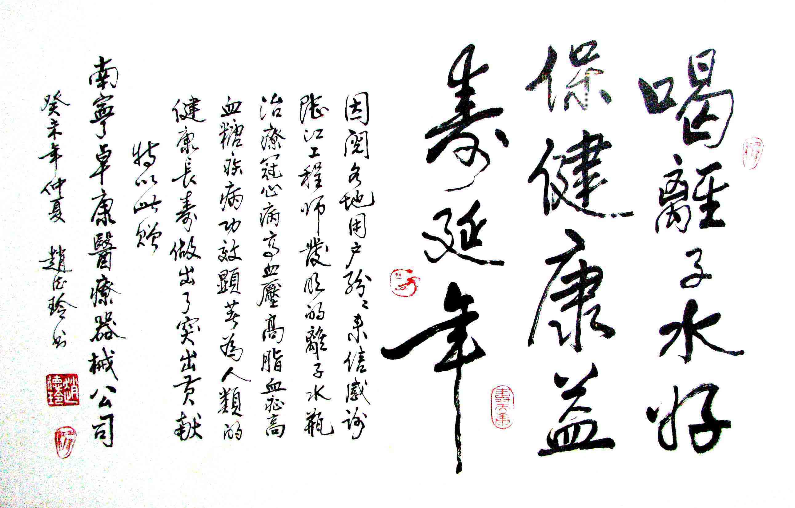 -----我是從事建筑的高工,本來沒有資格去攻克醫(yī)學(xué)難題,卻為了自身健康才扣響醫(yī)學(xué)的大門。由于我1990年患高血壓,因怕中風(fēng)才研究發(fā)明了離子水瓶,我把水處理成微小分子團(tuán)水,飲用后治愈了高血壓。便于1993年底送到三家省級醫(yī)院做臨床試用4個月。經(jīng)北京和廣西醫(yī)學(xué)專家鑒定:"降脂降壓效果好"," 能擴(kuò)大心腦動脈流量,改善心腦電圖以及微循環(huán)","對治療心腦動脈粥樣硬化、高血壓、高血脂有良好的醫(yī)療保健作用。""產(chǎn)品的技術(shù)性能和療效達(dá)到了同類產(chǎn)品的國內(nèi)領(lǐng)先水平,經(jīng)廣西醫(yī)學(xué)科學(xué)情報研究所檢索,未見國外有類似報道。"中國醫(yī)學(xué)科學(xué)院張正國教授從美國國立醫(yī)學(xué)圖書館數(shù)據(jù)庫存Medline檢索英俄文資料,均未見類似報告。2000年上市后,我為了對消費(fèi)者負(fù)責(zé)而繼續(xù)觀察研究,一直通過《信譽(yù)卡》和《質(zhì)量跟蹤調(diào)查書》向患者承諾療效,請用戶使用6個月后反饋效果。和脂壓患者飲用2至5個月內(nèi),消除癥狀,停服藥物,血壓正常;冠心病患者飲用3~5個月逐漸減輕至消除心絞痛、房顫等癥狀,不再服藥,飲用1年左右心電圖正常,經(jīng)冠脈造影掃描無明顯狹窄,表明冠心病痊愈。大量患者還反映許多衰弱器官被修復(fù),讓前列腺增生、慢性咽喉炎、慢性氣管炎、支氣管炎、慢性胃炎、腸炎和膽囊炎等不藥而愈;2型糖尿病患者是因為胰島衰弱致病,飲用該水半年至一年,逐漸減藥至停藥,血糖尿糖正常,真正治愈2型糖尿病。中風(fēng)后遺癥患者飲用六七個月,可逐漸減輕至消除肢體和語言障礙,表明飲用該水能讓壽命很長的神經(jīng)元細(xì)胞逐漸修復(fù),奇跡般地恢復(fù)肢體和語言功能。飲用后還使胸腺和脾臟兩個重要的免疫器官被修復(fù)和增強(qiáng),產(chǎn)生免疫細(xì)胞多,提高了免疫力,使人不生病或少生病。自此, 飲用微小分子團(tuán)水創(chuàng)造了攻克冠心病、高(低)血壓和糖尿病三大醫(yī)學(xué)難題的奇跡。人們對此感到不可思議,但實踐是檢驗真理的唯一標(biāo)準(zhǔn)。