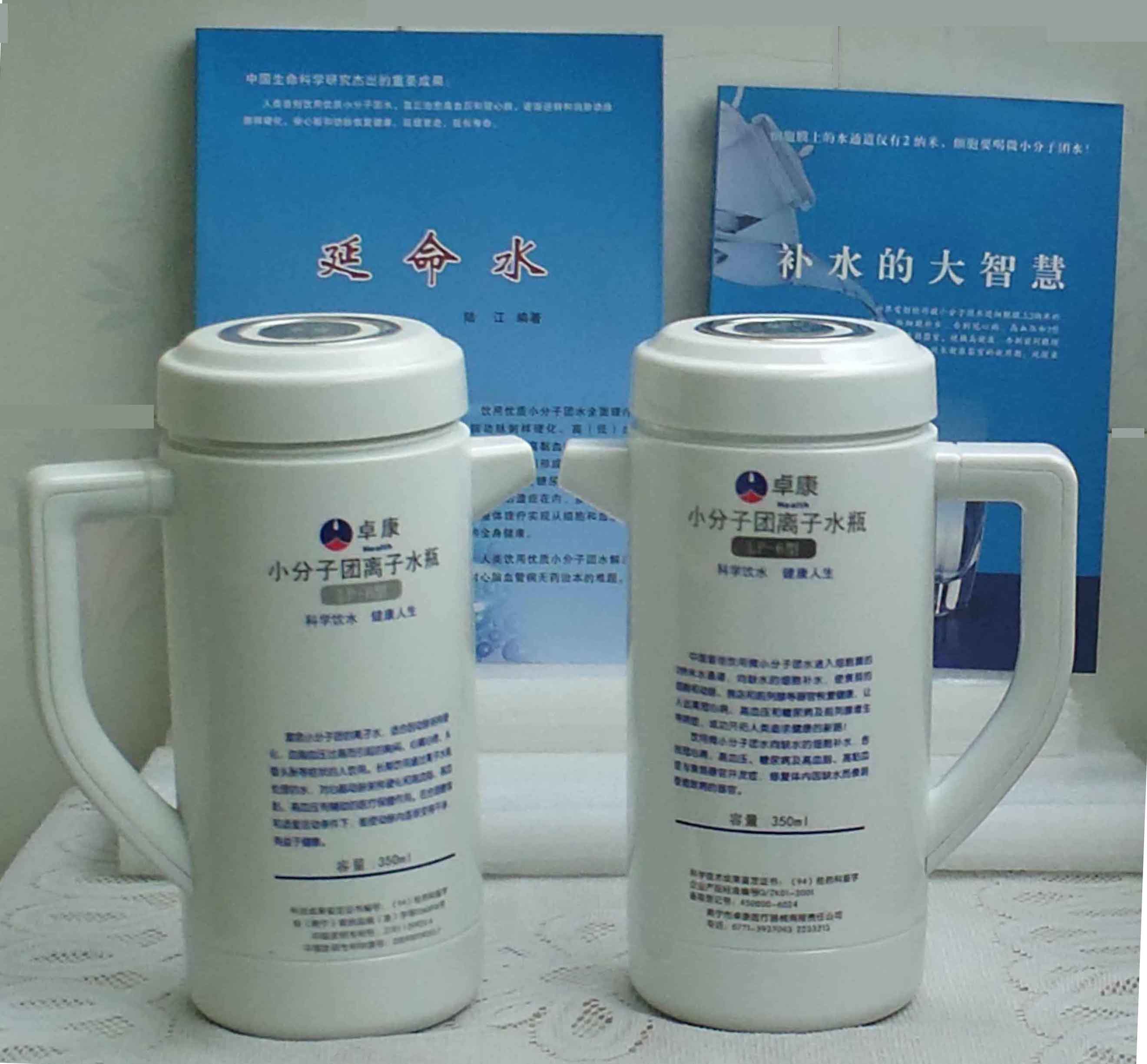 本品大量用戶的使用效果表明,能治愈冠心病、腦動脈硬化、原發(fā)性高(低)血壓、高血脂、高粘血癥、高血尿酸癥(痛風(fēng))和2型糖尿病、衰弱器官并發(fā)癥(前列腺增生、腎衰與尿毒癥)及中風(fēng)后遺癥等療效好。產(chǎn)品配信譽(yù)卡。使用壽命30年,不換芯,易清洗。團(tuán)購優(yōu)惠。從郵局匯款,匯費(fèi)1%,地址按本頁下方地址、聯(lián)系人寫。從銀行匯款,請點(diǎn)擊[聯(lián)系匯款]欄,從工商銀行匯款,建設(shè)銀行、農(nóng)業(yè)銀行匯款,均免收匯費(fèi),匯款后20--30分鐘內(nèi)發(fā)短信,可用微信轉(zhuǎn)帳,均免匯費(fèi),微信號即手機(jī)號13768308380。匯款后,告知你的姓名和地址,我公司聯(lián)系人手機(jī)號是:13768308380卓康牌離子水瓶為我公司獨(dú)家生產(chǎn),郵購產(chǎn)品配《補(bǔ)水的大智慧》彩印書一本,另配四季出版社出版的新書《補(bǔ)水的大智慧》一本,并配光盤一張(含央視主持人釆訪陸江的對話視頻)。目前市場和"淘寶網(wǎng)"上有人兜售假冒的偽品,望讀者審察辯別真?zhèn)危旒僬哓飧`假冒本公司的各種認(rèn)證、獲獎獎項、專利號和外包裝盒上的中英文字,包括科技成果的鑒定意見等,請讀者注意防偽。如何識別假貨?已經(jīng)買了假貨怎么辦?(請點(diǎn)擊[打假掠影][打假掠影])。